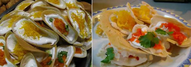 9.糯米甜点(Kao neaw Sang-Kaya):糯米饭上加配猪肉丝;或是把鸡蛋和糖打匀蒸熟,是一种像布丁一样的甜食,放在糯米饭上食用。