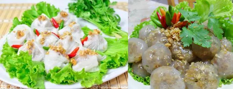 6.糯米皮肉馅儿(Sa Kuu Sai Muu, Khao Kiaw Pak Mor):一种是用糯米粉水皮包裹猪肉内馅,另一种则是用像西米露的外皮,同样包着猪肉的咸甜点心,泰国人多半会混着油葱、辣椒一起食用。