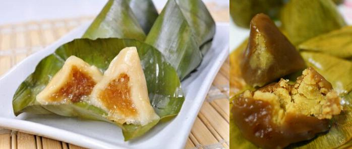 7.黄色米棵(Kha Nom Tien):这道咸点心是用糯米制成的,内馅是猪肉加上一些胡椒,用芭蕉叶或香兰叶包起来蒸熟食用。