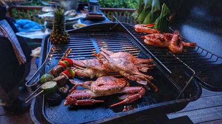 而晚餐更是私人厨师的海鲜套餐。你坐拥着整片大海,幽幽烛光,大概没有姑娘能抵抗这种浪漫吧~