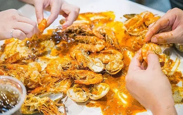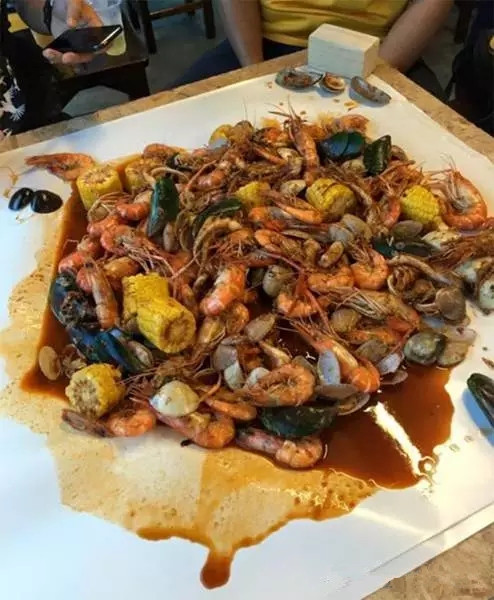 店铺魅力在于顾客需要用自己的双手去代替叉子和勺子来享用海鲜大餐,该店会提供秘制的虾酱,桌上会铺上专门订制的大“餐纸”然后将海鲜大餐倒在“餐纸”上便可直接动手享用啦!