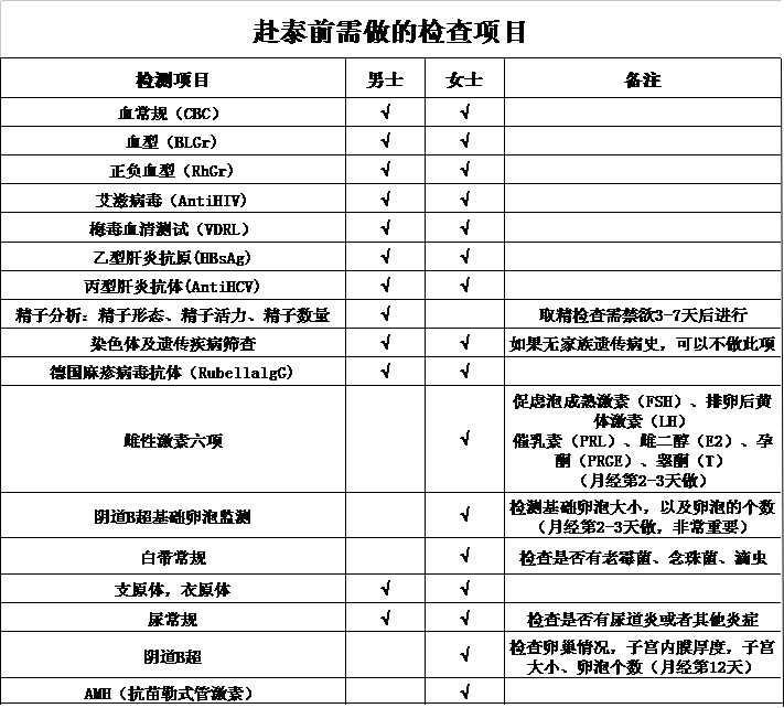 > 试管婴儿在赴泰前需做的检查项目